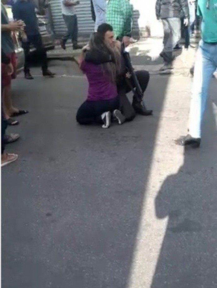 Nas imagens, registradas por testemunhas, Marco Antônio aparece bastante nervoso e usando Vitória como um 'escudo' para não ser capturado pelos policiais. Em todo o momento, o criminoso manteve a vítima próximo de si com uma arma apontada para ela.