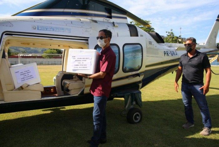 Os municípios do Rio de Janeiro e São Gonçalo fizeram a retirada diretamente na Coordenação Geral de Armazenagem (CGA) da SES, em Niterói. Vans e caminhões foram utilizados às 7h de hoje (10) para retirar os imunizantes do CGA para entregar os imunizantes aos municípios das regiões Metropolitana I e II, Médio Paraíba, Serrana, Centro Sul e Baixada Litorânea, com escolta da Polícia Militar .Às 8h, três helicópteros levaram as vacinas para as regiões da Costa Verde, Norte e Noroeste, sendo uma aeronave da Saúde, uma do Governo do Estado e uma do Corpo de Bombeiros.