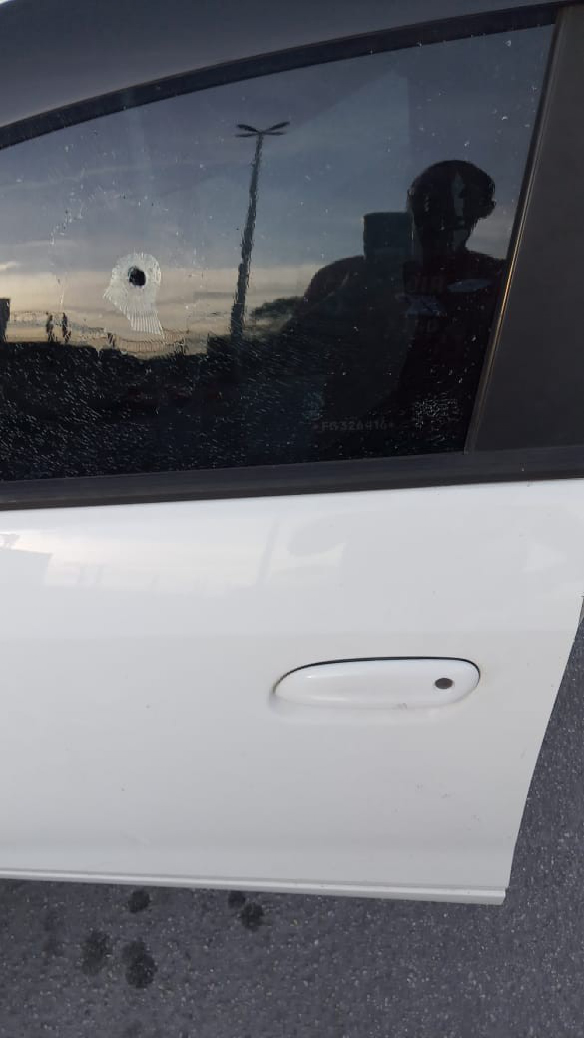 Um carro que passava pela rodovia foi atingido por um tiro, mas ninguém ficou ferido.
