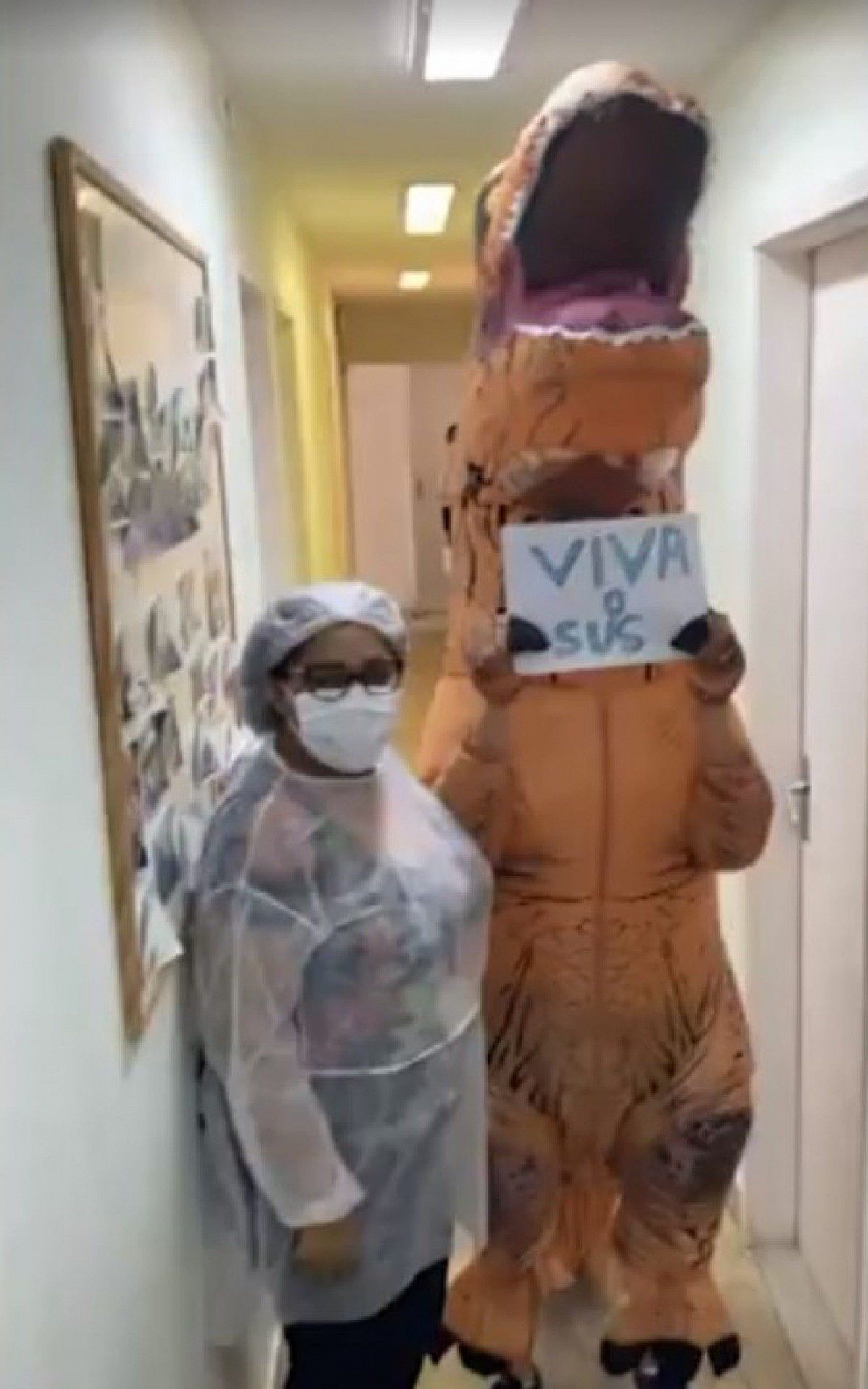 O vídeo da chegada no posto de saúde foi divulgado nas redes sociais. A data do dia em que a mulher se vacinou não foi divulgada. Com uma placa nas mãos, ela homenageia o Sistema Único de Saúde (SUS). O bom humor foi usado para conscientizar sobre a importância da vacinação.