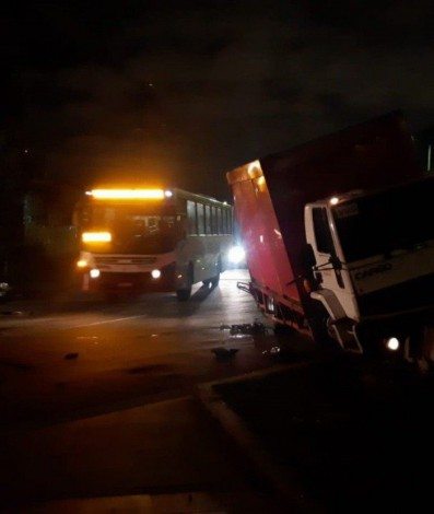 Caminhão ficou preso na mureta na Rua da GamboaREPRODUÇÃO TWITTER