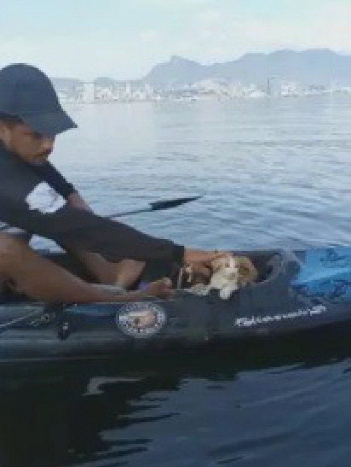 Rio - Pescadores que passavam de caiaque na Baía de Guanabara foram surpreendidos ao ver um gato sendo jogado do alto da ponte Rio-Niterói na manhã do último domingo (15). O resgate foi registrado por um colega do pescador, que também estava com ele, em outro caiaque.