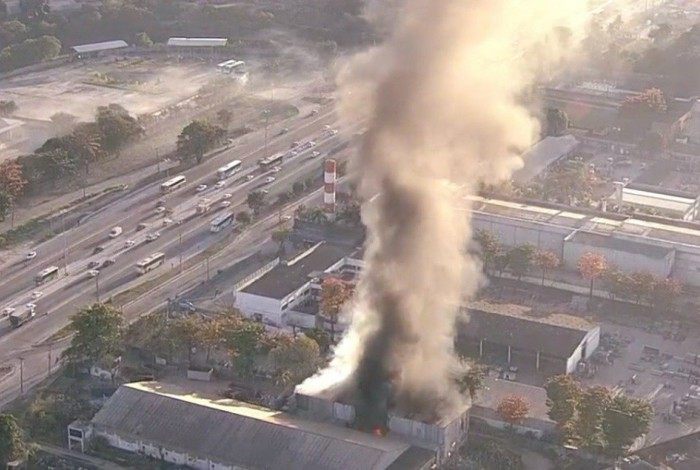 Incêndio atinge galpão às margens da Avenida Brasil, na altura de Fazenda Botafogo - REPRODUÇÃO DE VÍDEO/TV GLOBO