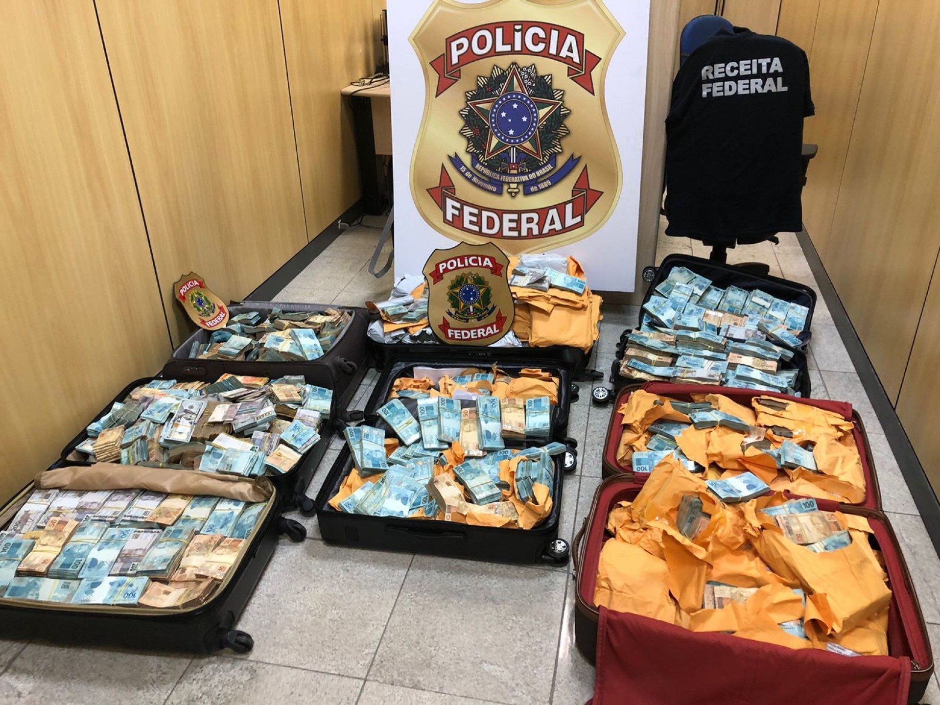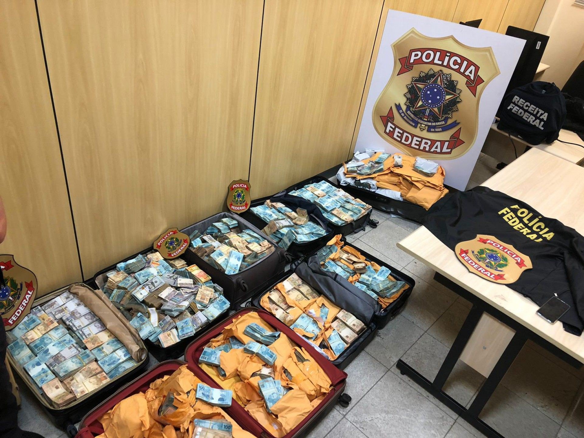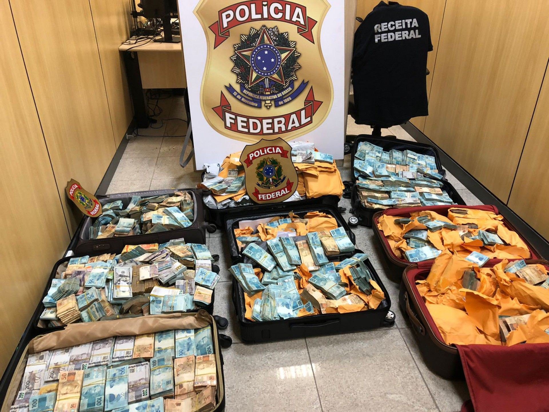 Agentes apreenderam grande quantidade de dinheiro em espécie na casa de um dos presos. Valores foram levados em malas à sede da PF