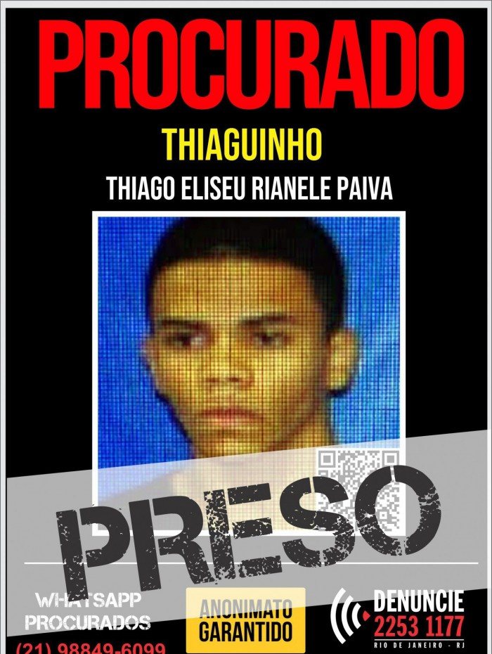 Ao todo, Thiago tem 11 passagens por crimes como associação para o tráfico, roubo a posse ou porte ilegal de armas de uso restrito. A prisão foi registrada na 22ª DP (Penha), de onde ele aguarda para ser encaminhado à unidade prisional.