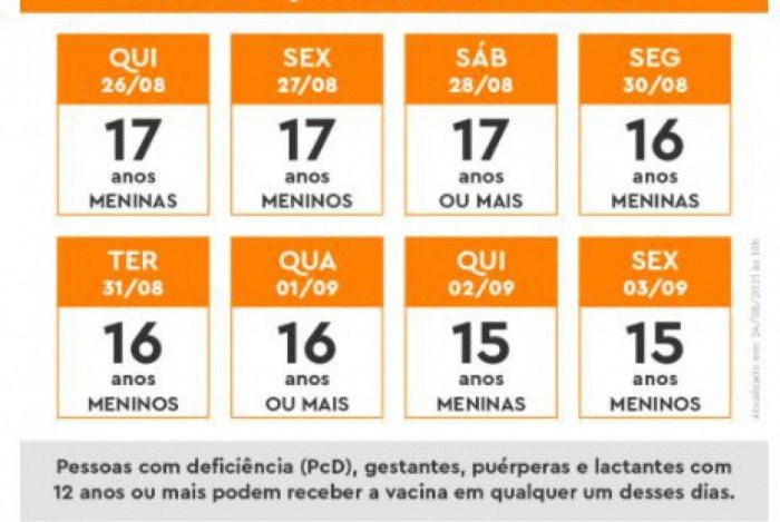 A cidade ainda conta com 296 mil cariocas atrasados para receber a primeira dose. Os grupos de faixa etária mais jovens são os que menos compareceram. Cerca de 146 mil cariocas de 20 até 29 anos não foram aos postos para receber a primeira dose, o equivalente a 14,9% da faixa etária. Entre quem possui 18 até 19 anos, 35 mil pessoas não estão imunizadas com a primeira injeção, o que compreende 20% do público.