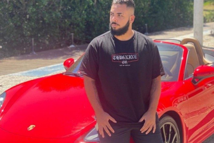 Wesley Pessano encostado em seu Porsche recém-comprado, avaliado em cerca de R$ 450 milReprodução/Rede social