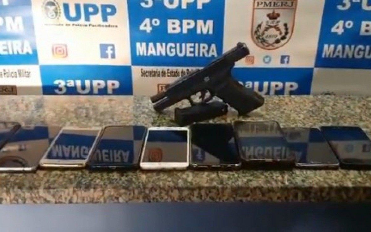 Rio - Policiais militares da Unidade de Polícia Pacificadora (UPP) apreenderam três adolescentes, na manhã deste domingo, na Rua Visconde de Niterói, na Mangueira, na Zona Norte do Rio. Com eles, os PMs encontraram dez celulares e uma pistola falsa.