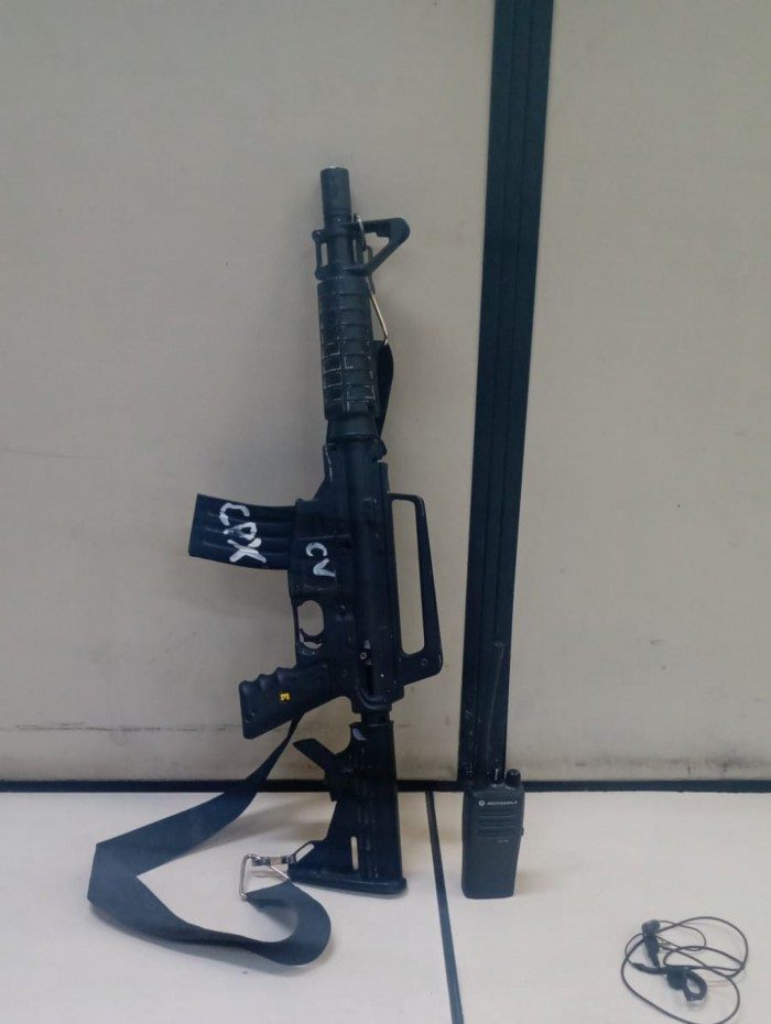 Um simulacro de fuzil e um rádio comunicador foram apreendidos pelos agentes