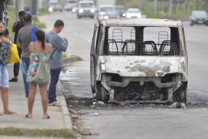 Ação começou ainda na madrugada de quinta-feira (17), e se estendeu ao longo do dia. Pelo menos sete vans foram incendiadas, em conflito entre os milicianos Tandera e Zinho, que disputam o controle de Santa Cruz
