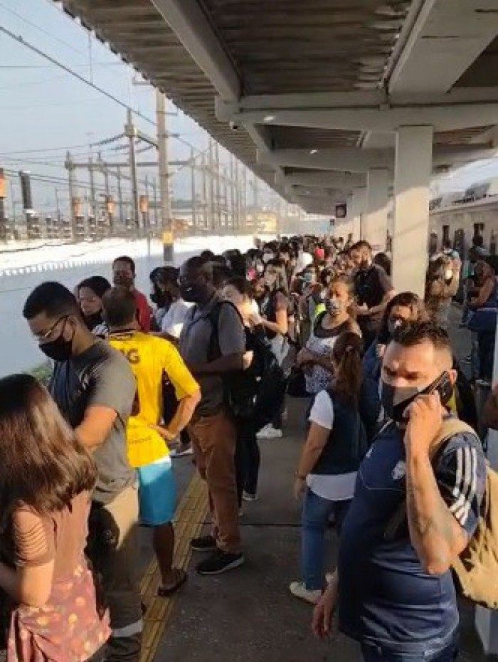 Plataforma lotada é flagrada por passageiros do ramal GramachoReprodução
