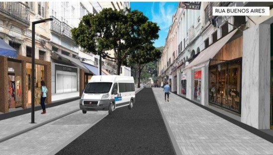 A Rua Buenos Aires receberá nova pavimentação, ordenamento das baias de estacionamento ao longo da via e esquinas em piso elevado, beneficiando a travessia dos pedestres. A Avenida Passos, que hoje recebe a maior parte dos veículos e ônibus que circulam pelo Centro, terá três pistas de rolamento, uma para BRS e duas de veículos, proporcionando calçadas mais largas que serão requalificadas e arborizadas. Ao todo, as intervenções preveem melhorias em cerca de 40 mil m² de vias.