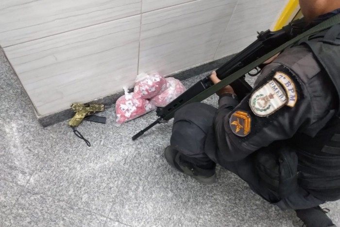 Uma pistola e 590 pinos de cocaína foram apreendidos