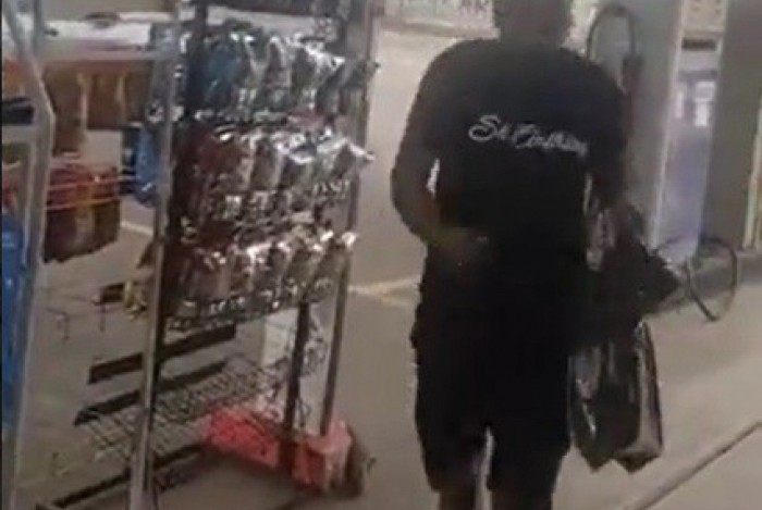 Nas imagens, pessoas que estão no estabelecimento pedem para homem ter cuidado com os tirosReprodução/Redes Sociais