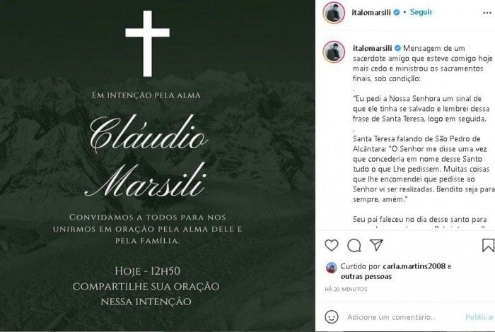 Italo Marsili, médico psiquiatra, usou as redes sociais para agradecer as mensagens recebidas. O pai dele, Cláudio Marsili, foi morto com um tiro na cabeça