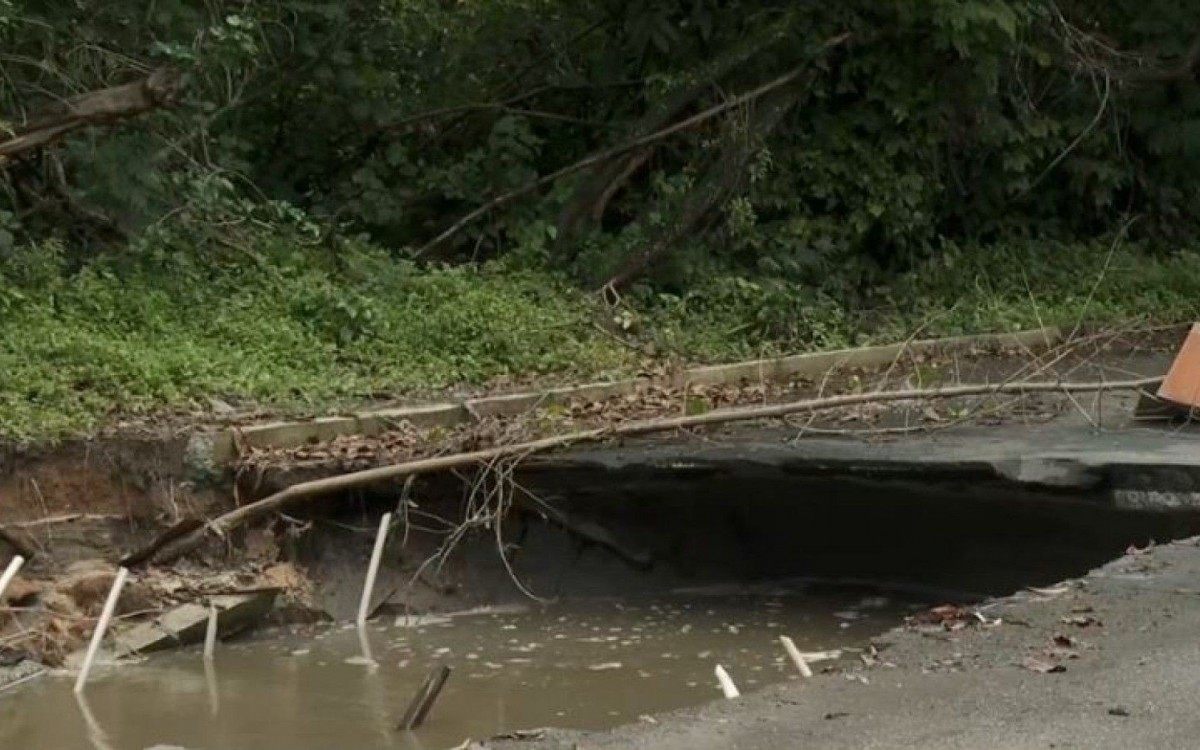 Motoristas precisaram pegar a contramão para fugir de bolsão d'água na Avenida Engenheiro Souza Filho, principal via de acesso à comunidade da Muzema, na Zona Oeste. A prefeitura informou que enviou uma equipe para desobstruir o sistema de drenagem.