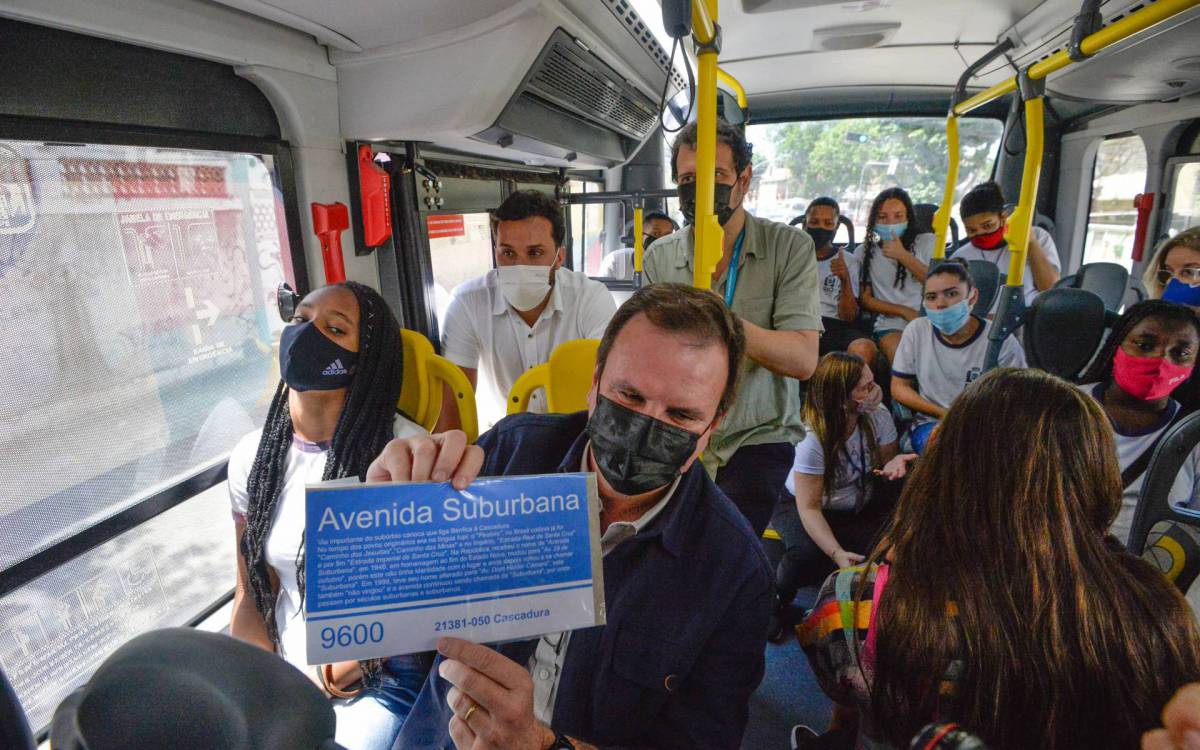 Rio de Janeiro - 04/11/2021 - CIDADE/ Rio de Janeiro - No dia nacional da cultura, o prefeito Eduardo Paes participou na manha de hoje (05) da primeira viagem do programa Verao Verde,que levara cariocas aos pricipais pontos turisticos de Madureira, na foto Eduardo Paes no onibus da culturaFoto : Fabio Costa/ Agencia O DiaFabio Costa/ Agencia O Dia