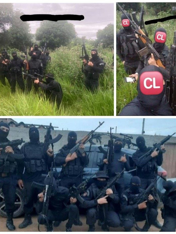 Em uma das imagens, é possivel ver que um criminoso segura um fuzil com as inscrições "Tropa do Ecko".