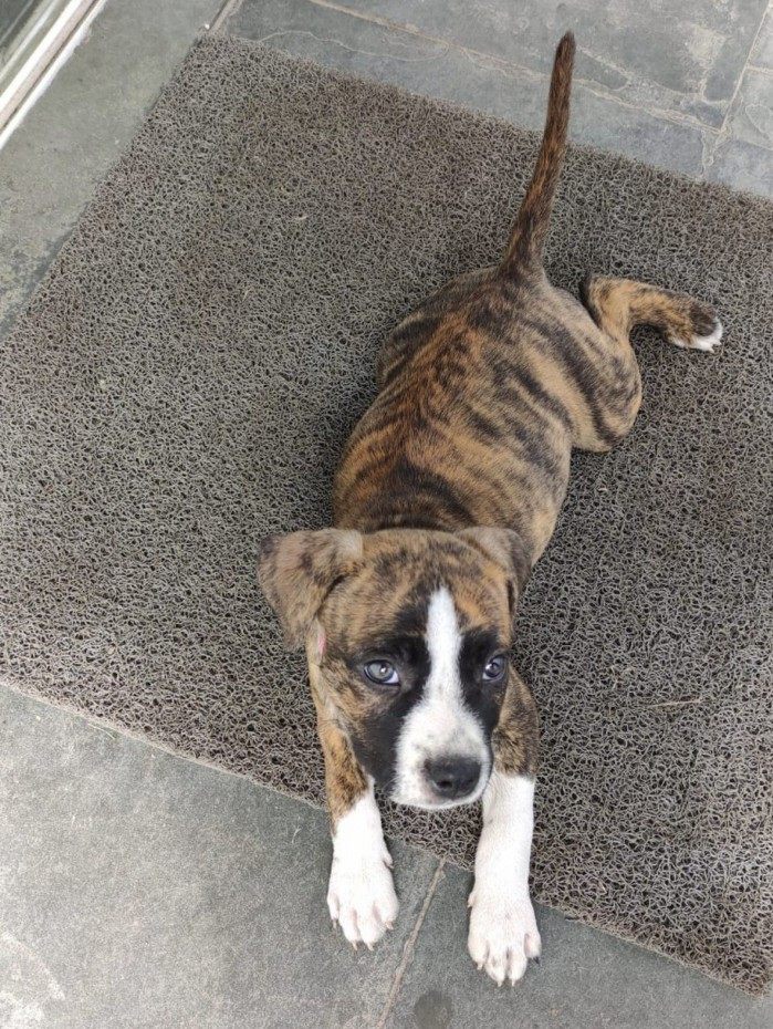 O cão, do sexo feminino, atende pelo nome de Zara e tem apenas três meses de idade. Ela usava uma coleira rosa.
