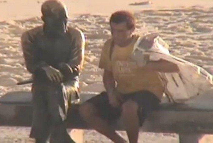 Dias após o ocorrido, um vídeo começou a circular nas redes sociais. Nele, é possível ver o homem com uma sacola na mão apoiando o pé no banco onde fica a obra. Ele usa uma espécie de madeira com pregos para tentar retirar os óculos da estátua. Minutos depois, ele consegue pegar o objeto e sai andando do local.