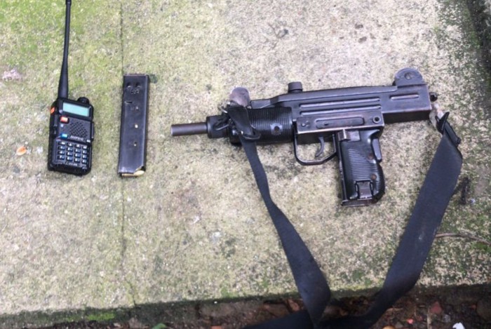 A PM apreende uma submetralhadora 9 mm e um rádio comunicador Divulgação