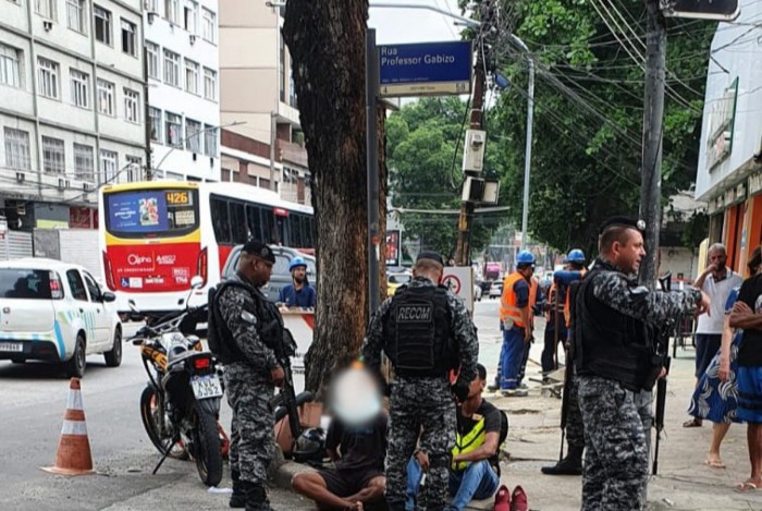 Policiais do Batalhão de Rondas Especiais e Controle de Multidões (RECOM) patrulhavam a região, quando presenciaram o crime. A equipe conseguiu interceptar os criminosos em seguida.