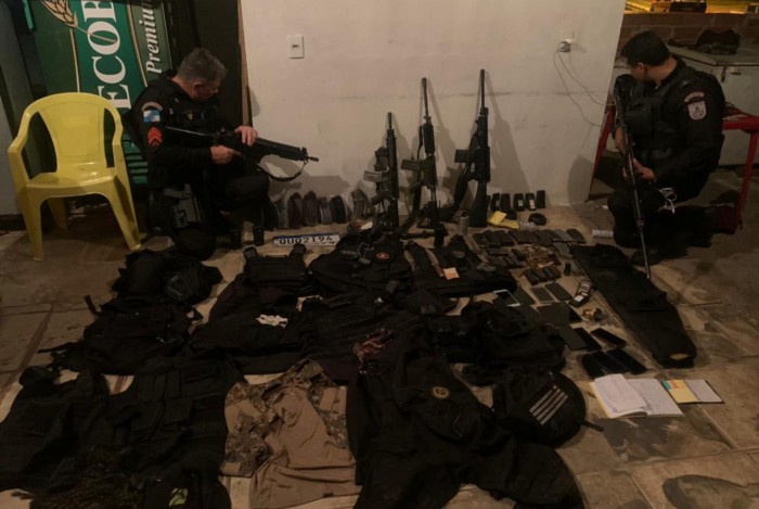 Criminosos atiraram contra os policiais e houve confronto. Além do PM, um miliciano também foi morto. Outras 19 pessoas foram presas