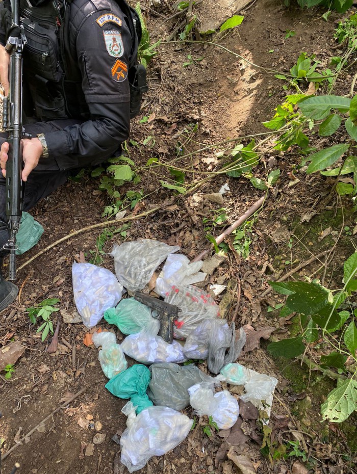 Segundo os agentes, um grupo de criminosos entrou em confronto com os policiais que faziam patrulhamento na região. Após o fim do tiroteio, o homem foi localizado no chão, já morto. Com ele, PMs apreenderam uma arma, drogas e um radiotransmissor.