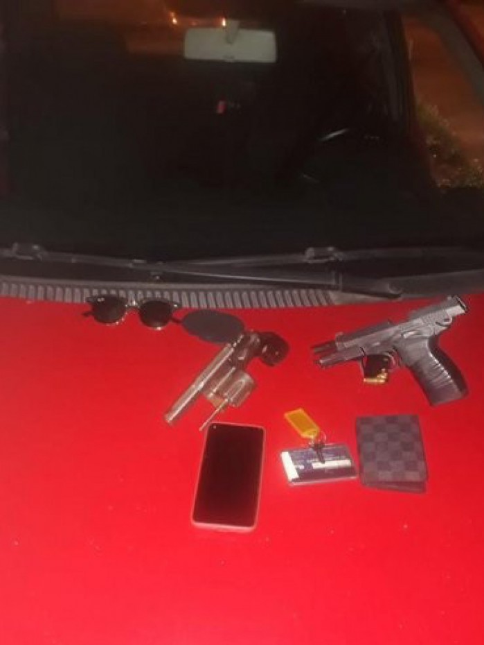 Com os suspeitos foram achados duas armas, uma granada, um rádio comunicador e três veículos roubados