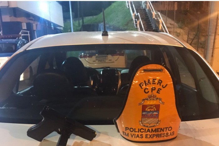 De acordo com a Polícia Militar, uma equipe do BPVE fazia patrulhamento na região quando abordaram o veículo. Eles avistaram dois criminosos com um simulacro de pistola fazendo o motorista refém.