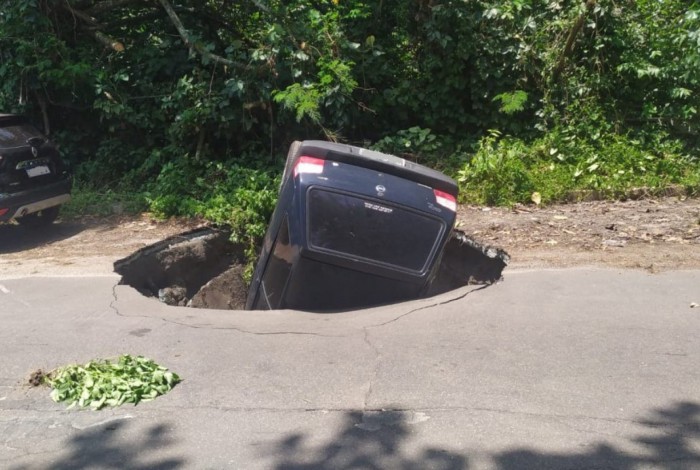 Solo cedeu e veículo foi engolido pela crateraReprodução