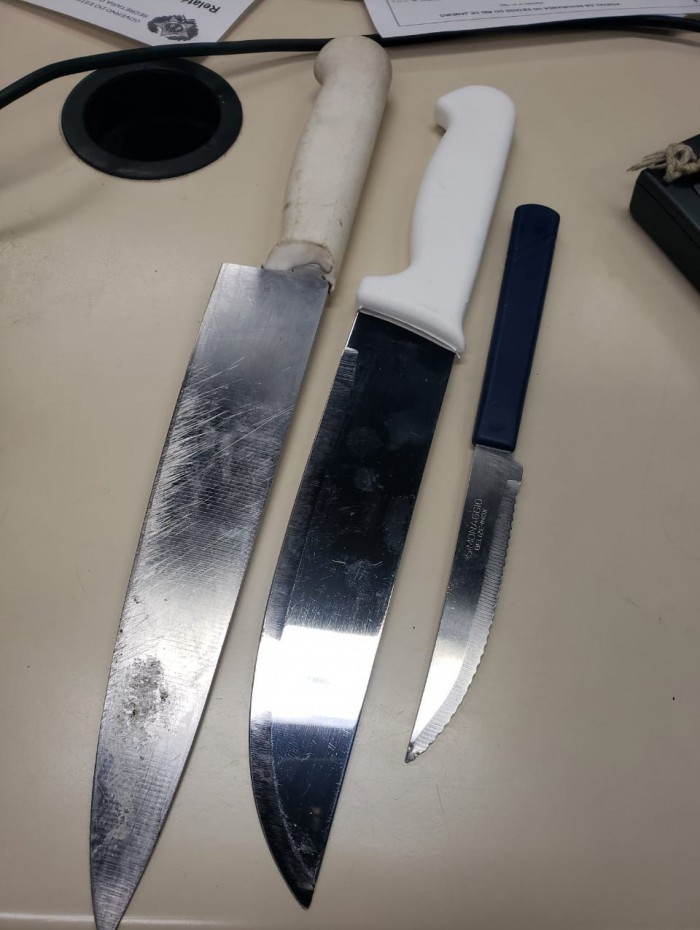 A prisão aconteceu durante um patrulhamento de rotina dos agentes, que perceberam movimentação na rua e uma jovem tentando impedir o roubo do seu carro. O suspeito foi abordado e com ele três facas foram encontradas. A vítima ficou com as mãos feridas, foi levada ao pronto-socorro e passa bem.