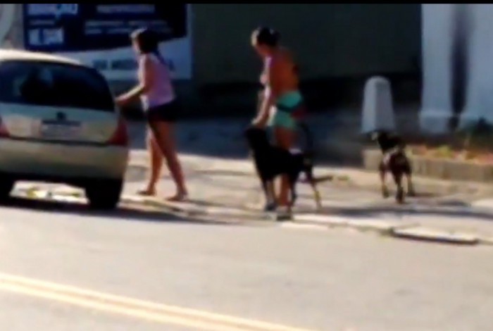 A gravação mostra as duas mulheres parando o carro e tirando os cachorros. Um estava no banco de trás e outro no porta-malas. Também é possível ver uma criança presenciando a ação. Segundo uma testemunha, ainda havia outra dentro do veículo.