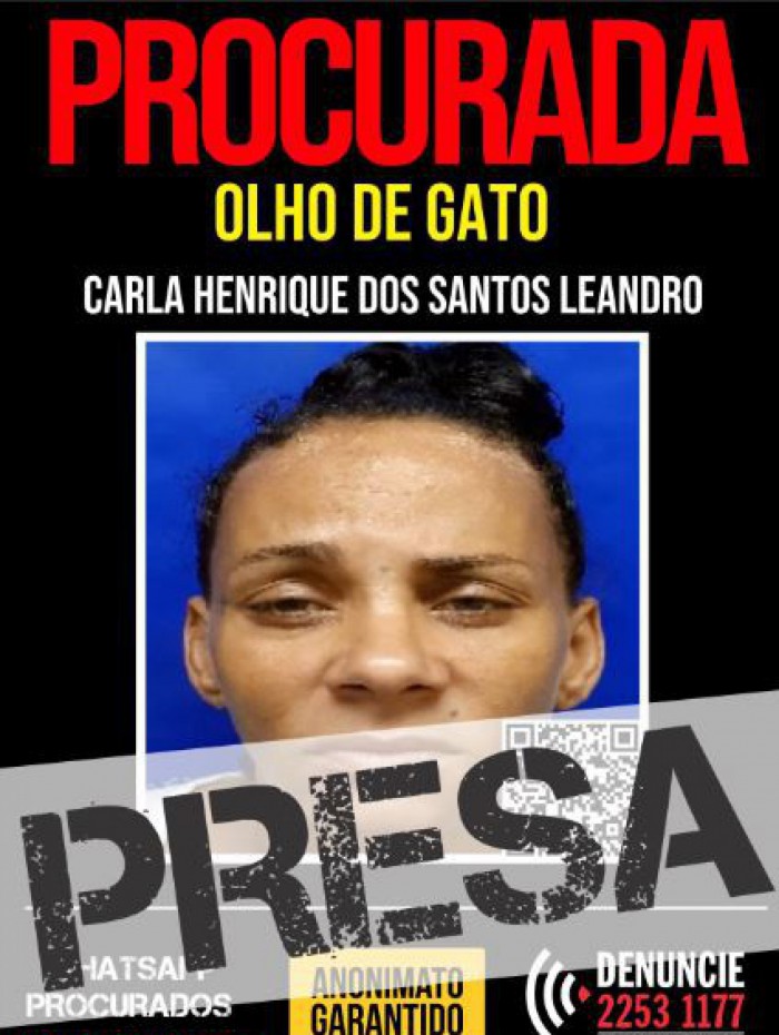 Rio - Policiais Militares do 40º BPM (Campo Grande) prenderam, na noite desta quarta-feira, a criminosa Carla Henrique dos Santos, conhecida como "Olho de Gato", de 41 anos, dentro de um shopping, em Campo Grande, na Zona Oeste do Rio. A prisão aconteceu com ajuda de informações do Disque Denúncia.
