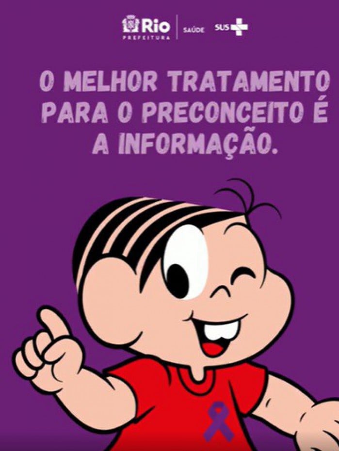 Rio - A Secretaria Municipal de Saúde do Rio de Janeiro (SMS-Rio), com apoio do Instituto Mauricio de Sousa, lançou uma campanha que busca combater o estigma e o preconceito sobre a hanseníase, por meio de suas redes sociais. O post propõe que “o melhor remédio para o preconceito é a informação” e traz a Turma da Mônica para dar um importante recado. A ilustração foi criada para conscientizar sobre o Janeiro Roxo, mês dedicado a alertar a população sobre a doença e a orientar para o tratamento, oferecido em todo o país pelo SUS. Neste domingo, 30, é o Dia Mundial de Combate e Prevenção à Hanseníase.