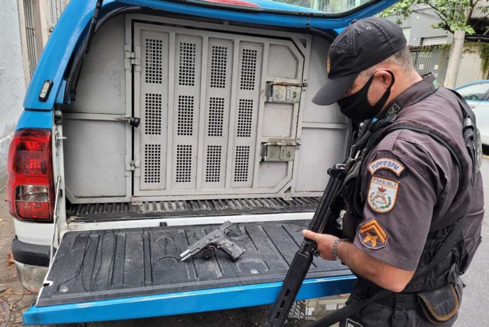 Ele foi preso em flagrante por porte ilegal de arma de fogo e encaminhado para 19ª DP (Tijuca), onde o caso foi registrado.
