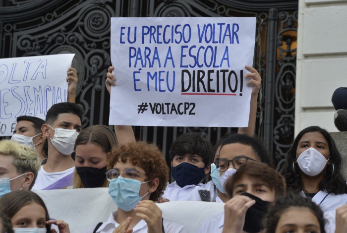 No último dia 2, o Conselho Superior do Colégio Pedro II (Consup) decidiu adiar a volta das aulas presenciais na instituição, que estava marcada para esta segunda-feira (7). Com isso, o modelo híbrido foi mantido com os alunos indo ao colégio a cada 15 dias. No dia 25 de fevereiro, haverá uma nova reunião para decidir as condições do ensino. A decisão desagradou estudantes e responsáveis, que protestaram. No Centro, estudantes do Pedro II caminharam da Cinelândia até o Ministério Público Federal (MPF), que já havia pedido à Justiça o retorno das aulas presenciais, em uma das instituições de ensino mais tradicionais do Brasil.