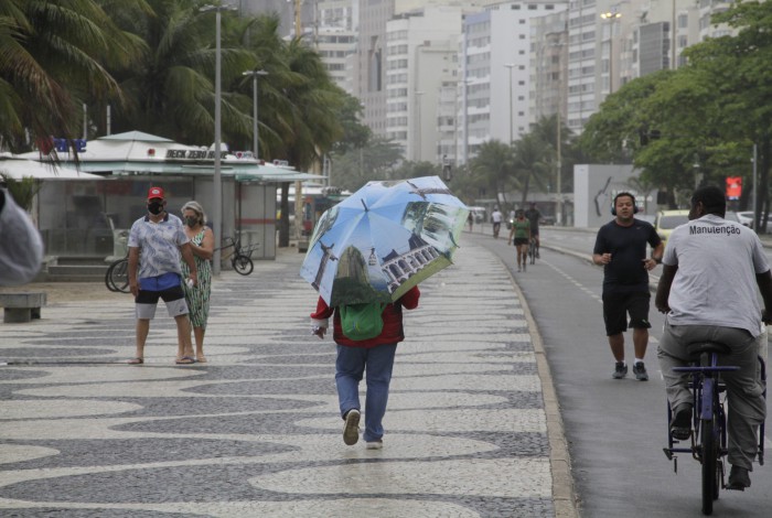 A passagem de uma frente fria pelo oceano mantém o tempo instável, segundo o Alerta Rio. O céu irá variar entre nublado a encoberto e há previsão de chuva fraca a moderada a qualquer momento. Os ventos vão estar de moderados a forte (até 76 km/h).