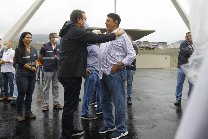 Prefeito Eduardo Paes entrega obras na Sapucaí e cumprimenta presidente da Liesa, Jorge PerlingeiroReginaldo Pimenta / Agencia O Dia