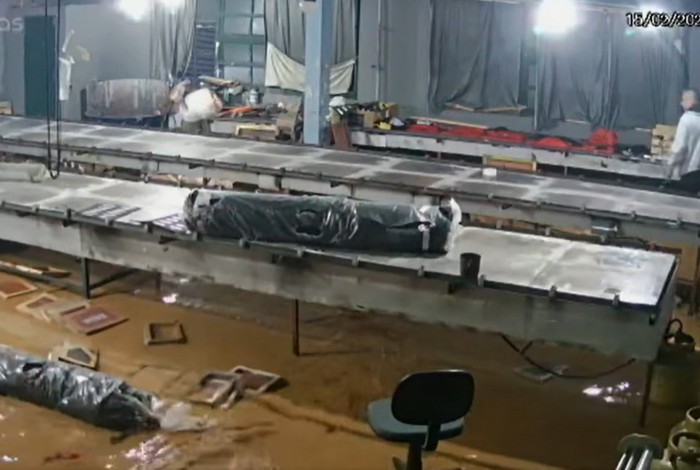 Momento em que trabalhadores de estamparia são 'engolidos' por solo durante chuva forte em Petrópolis - Reprodução