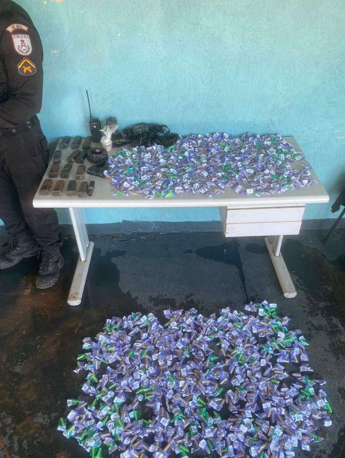 Ao chegar no local, a equipe encontrou 1.040 pinos de cocaína, um pote contendo um pó branco, 13 carregadores de arma, um "kit empunhadura", dois rádios comunicadores e uma base para rádio.
