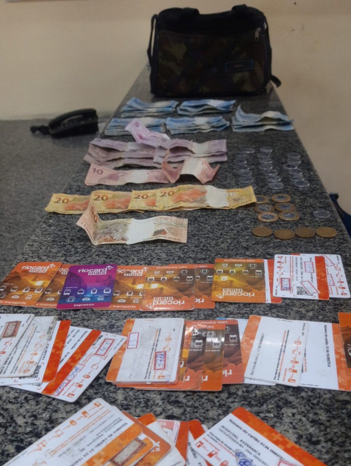 Cartões de transporte público e dinheiro foram apreendidos com o suspeitoReprodução