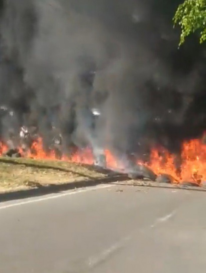 Populares fecham a via com pneus e atearam fogoDivulgação