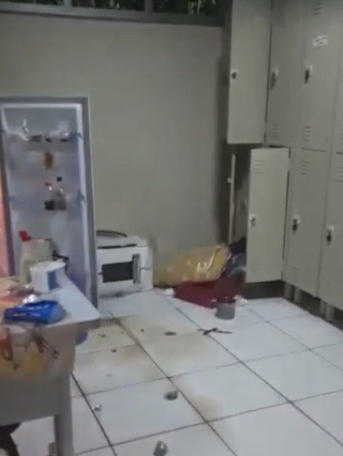 Em um vídeo que circula nas redes sociais, uma agente mostra a cozinha da unidade revirada. Nas imagens, é possível ver a geladeira e o microondas abertos, além de armários com pertences para fora. Há ainda bebida derramada, talheres e embalagens no chão. As janelas do espaço estão abertas e a mulher diz que os criminosos entraram por ali. Ela diz ainda que um outro agente tentou deter o invasor, mas ele conseguiu fugir.