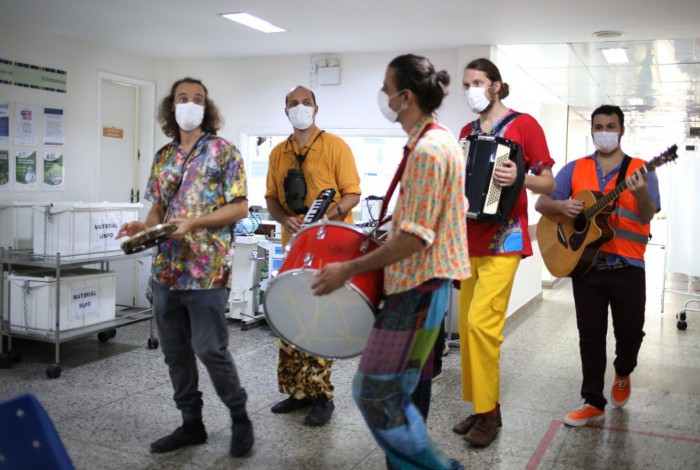 Rio - Depois de dois anos, os artistas do Doutores da Alegria retomaram as atrações cênicas no Hospital Estadual Azevedo Lima (HEAL), em Niterói, Região Metropolitana. A Banda Bagunço encenou o espetáculo “Pílulas sonoras, o Cortejo hospitalar do Bagunço”, na tarde de quarta-feira (13).