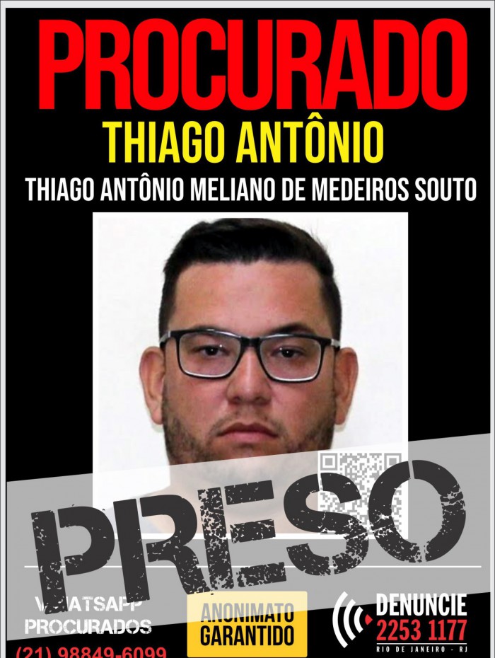 Thiago e o material aprendido foram encaminhados para a 76ª DP (Niterói), onde foi cumprido o mandado de prisão. O preso foi encaminhado para uma unidade prisional da Secretaria de Administração Penitenciária (Seap), onde ficará à disposição da Justiça.