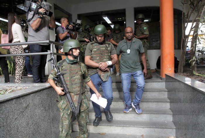 Durante a transferência para uma prisão da Marinha, no início da tarde deste domingo, os três militares usaram capacetes e coletes de fuzileiros navais, em cima da roupa civil, além de algemas. De acordo com os investigadores, o procedimento é um padrão da Força Armada para a transferência. A polícia segue em busca do corpo de Couto, que foi jogado no Rio Guandu.