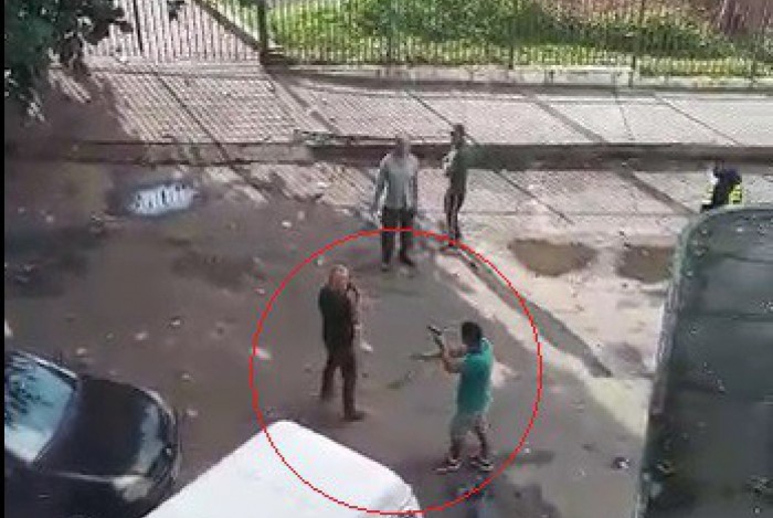 As imagens que circulam nas redes sociais já começam em meio a uma discussão. Logo no início, um homem de camisa verde, que seria Renato, manda um outro, de camisa preta, que seria um dos funcionários do ferro-velho, ajoelhar, com xingamentos e ameaça bater nele. Em seguida, ele saca a arma e aponta para o suposto funcionário do ferro-velho.Legenda: Vídeo de suposta discussão entre policial morto e dono de ferro-velho será periciado