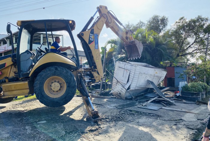 Barracas construídas irregularmente são demolidas em Pedra de Guaratiba