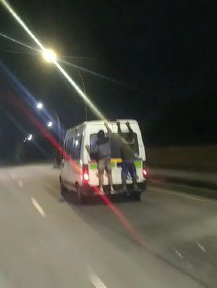 Rio - Dois homens foram flagrados pegando carona na traseira de uma van lotada no Viaduto de Benfica, na Zona Norte da cidade, noite desta quinta-feira (19). Em um vídeo que circula nas redes sociais, é possível ver a dupla agarrada no veículo, que aparenta estar em alta velocidade.